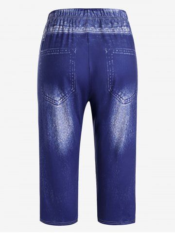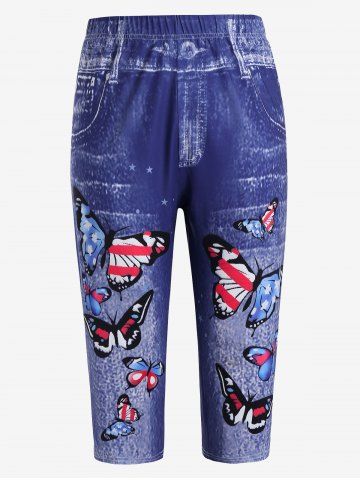 A*****a5Plus Size 3D Butterfly Pockets Denim Print Capri JeggingsColor: BLUE Size: 3X | US 22-24Beautiful fabric and very soft and comfortable. Fits perfectly and I love it.