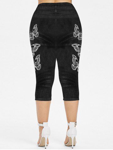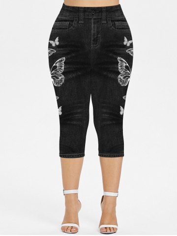 Plus Size 3D Denim Butterfly Printed Capri Leggings - Black - 4x | Us 26-28