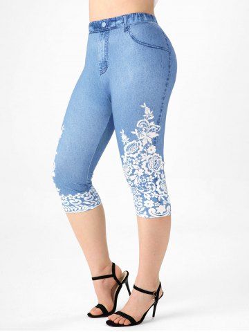 b*****y4Plus Size 3D Jean Lace Print Capri JeggingsColor: LIGHT BLUE Size: 2X | US 18-20love them but i did not know my size in leggings so they are to big but good for pj recommend picking smailer size other than that they are great