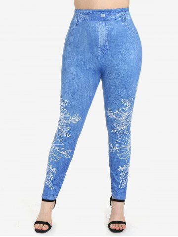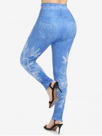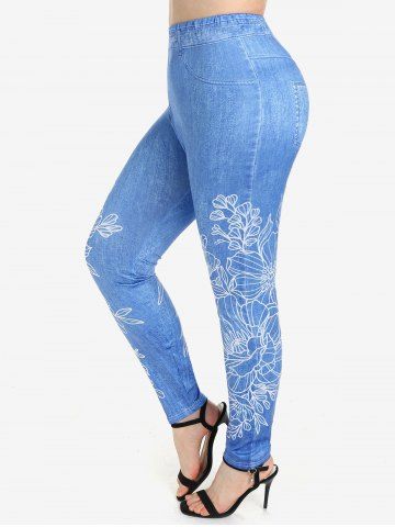 Graphic Leggings > Plus Size 3D Jeans Flower High Waisted Skinny Leggings