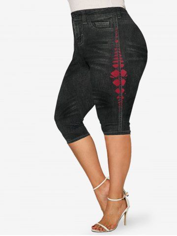 j*****s5Bohemian Print Cinched Handkerchief Tee and 3D Jeans Printed Capri Jeggings Plus Size OutfitsColor: DEEP REDThis outfit was really comfortable and I even took family pictures with this outfit and also like to wear it to work!