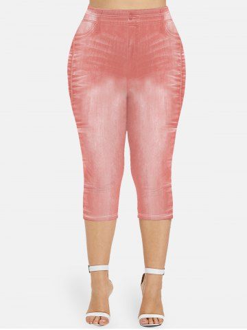 Plus Size 3D Jeans Printed Capri Jeggings - Light Pink - M | Us 10