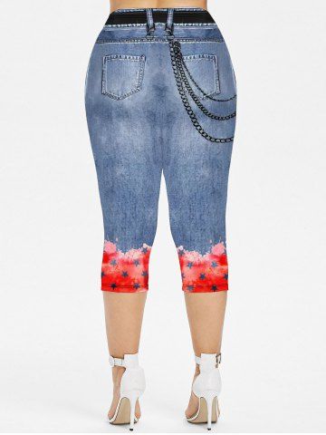 Graphic Leggings > Plus Size 3D Jeans Star Chains Printed Capri Jeggings