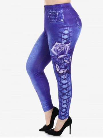 n*****74Plus Size 3D Lace Up Denim Rose Print Skinny JeggingsColor: DEEP BLUE Size: 1X | US 14-16love these jeggings. really nice smooth material, lovely pattern. I have written these quite a few times and the colour stays just as vibrant