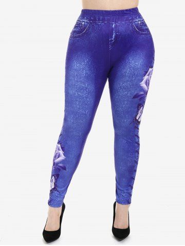 Graphic Leggings > Plus Size 3D Lace Up Denim Rose Print Skinny Jeggings