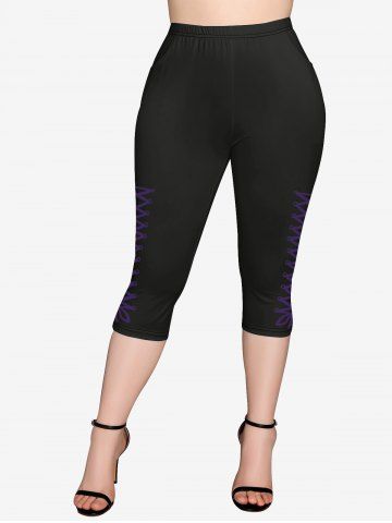 Plus Size 3D Lace Up Print Pockets Capri Leggings - Black - 5x