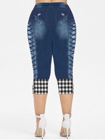 h*****s4Plus Size Lace Panel Lace-up Plaid Handkerchief Blouse and 3D Plaid Buttons Lace-up Jeans Printed Leggings Outfit BundleColor: BLACKI like the blouse more then the pants. But the capris fit well. Blouse is airy and cute