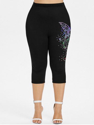 d*****r5Plus Size 3D Rhinestone Butterfly Print Capri LeggingsColor: BLACK Size: 5X | US 30-32Oh these fit beautifully and make my summer black clothing dreams is is wonderful