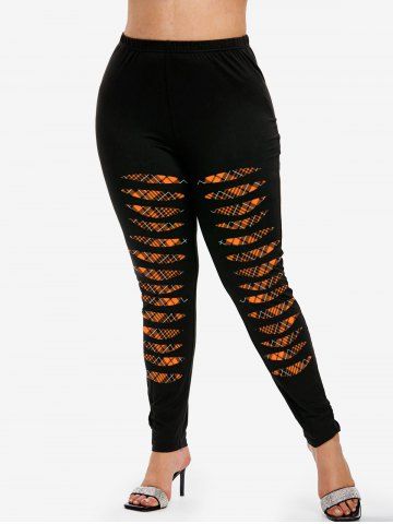 Plus Size 3D Ripped Plaid Printed Skinny Leggings - Black - 2x | Us 18-20