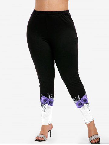Graphic Leggings > Plus Size 3D Rose Butterfly Printed Colorblock Skinny Leggings