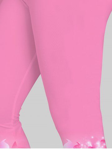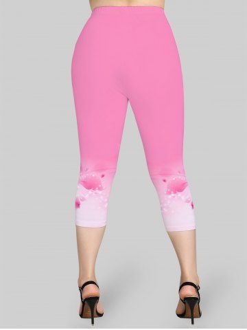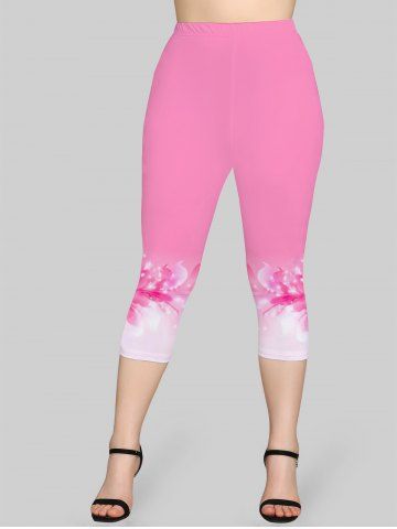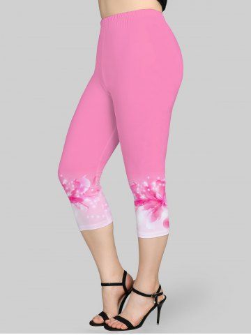 Plus Size 3D Sparkles Flower Printed Capri Leggings - Light Pink - 2x | Us 18-20