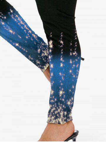 Plus Size 3D Sparkles Lighting Printed Ombre Skinny Leggings - Deep Blue - 2x | Us 18-20
