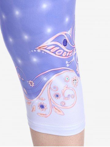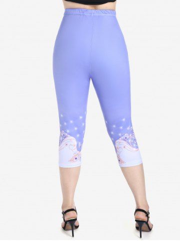 Plus Size 3D Sparkles Printed Colorblock Capri Leggings - Purple - 1x | Us 14-16