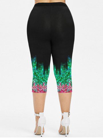 Plus Size 3D Sparkling Sequin Glitter Print Capri Leggings - Multi-a - 2x