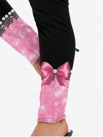 Plus Size 3D Sprkles Bowknot Printed Colorblock Leggings - Light Pink - 3x | Us 22-24