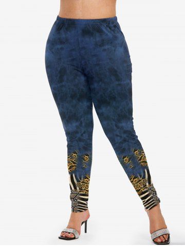 Plus Size Animal Print Tie Dye Skinny Leggings - Deep Blue - 4x | Us 26-28