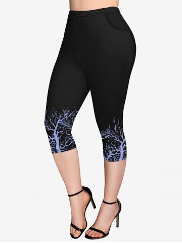Graphic Leggings > Plus Size Branch Print Pockets Capri Leggings