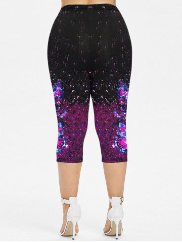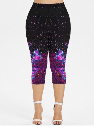 Plus Size Butterfly Colorblock Glitter Print Capri Leggings - Purple - 2x | Us 18-20