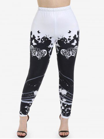 Plus Size Butterfly Printed Two Tone Leggings - Black - L | Us 12