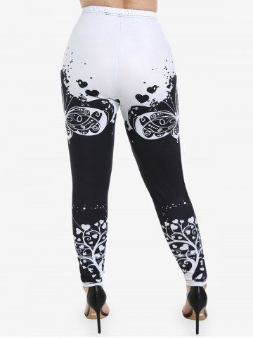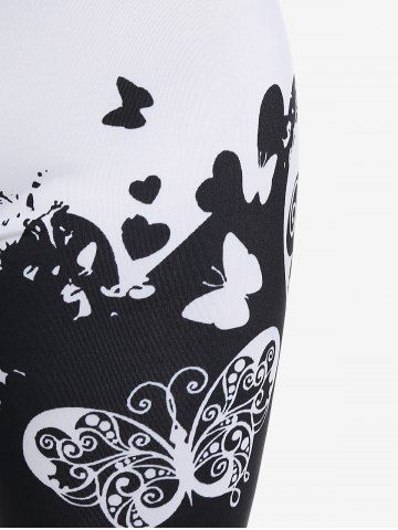 Plus Size Butterfly Printed Two Tone Leggings - Black - 1x | Us 14-16