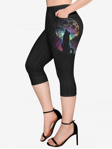 A*****a5Plus Size Cat Tree Moon Star Printed T-shirt and Pockets Capri Leggings OutfitColor: BLACKBeautiful fabric and very soft and comfortable. Fits perfectly. I love it.
