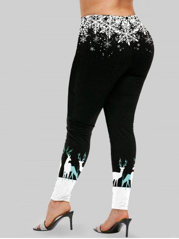 Graphic Leggings > Plus Size Christmas Snowflake Elk Print Skinny Leggings