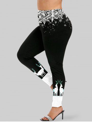 Plus Size Christmas Snowflake Elk Print Skinny Leggings - Black - 1x | Us 14-16