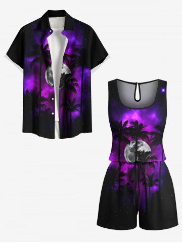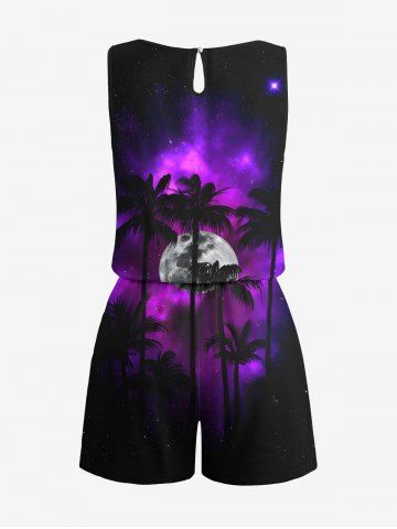Graphic Leggings > Plus Size Coconut Tree Galaxy Moon Print Cinched Hawaii Romper