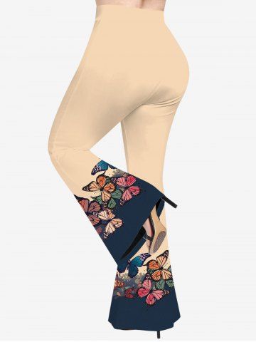 Graphic Leggings > Plus Size Colorblock Butterfly Plant Print Flare Pants