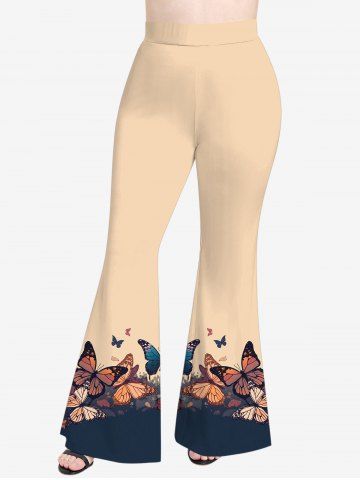 Graphic Leggings > Plus Size Colorblock Butterfly Plant Print Flare Pants