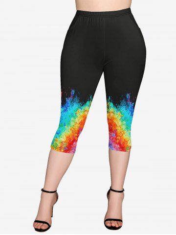 Graphic Leggings > Plus Size Colorblock Butterfly Print Pocket Capri Leggings