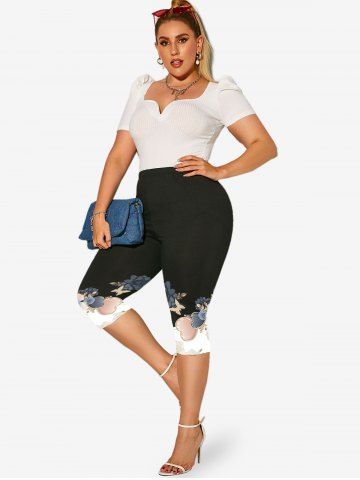 A*****a4Plus Size Colorblock Floral Heart Printed Capri LeggingsColor: BLACK Size: 3X | US 22-24Beautiful fabric and very soft. Fits perfectly comfortable and I love it.