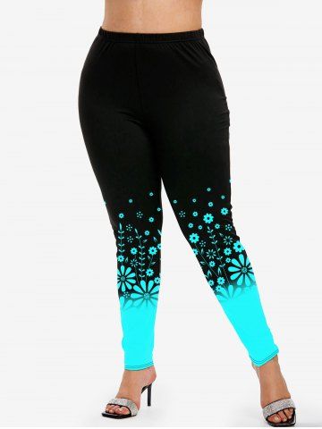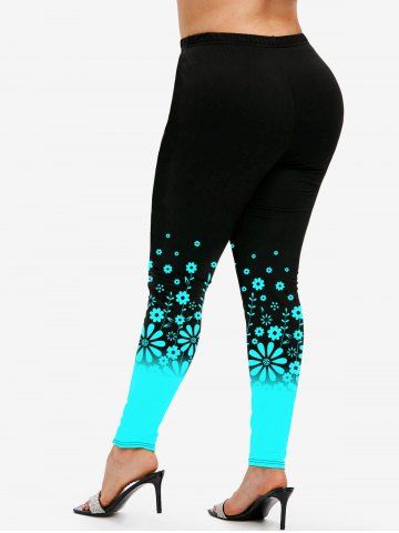 Graphic Leggings > Plus Size Colorblock Floral Print Skinny Leggings