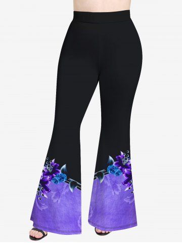 Graphic Leggings > Plus Size Colorblock Flower Print Flare Pants
