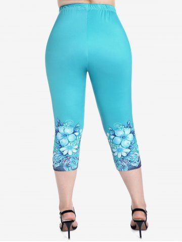 Graphic Leggings > Plus Size Colorblock Flower Printed Capri Leggings
