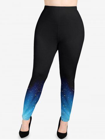 Plus Size Colorblock Ombre Glitter Sparkling Sequin 3D Print Leggings - Blue - 2x