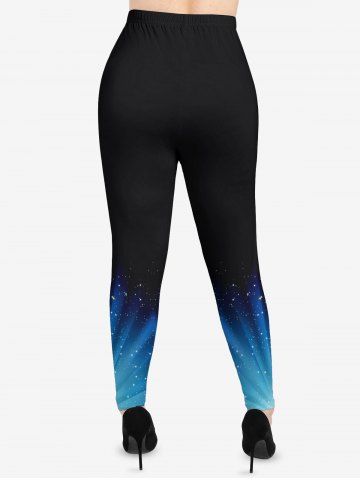 Plus Size Colorblock Ombre Glitter Sparkling Sequin 3D Print Leggings - Blue - 6x