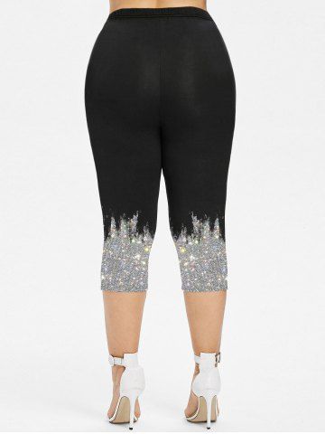 Plus Size Colorblock Sparkling Sequin Glitter 3D Print Capri Leggings - Silver - 5x