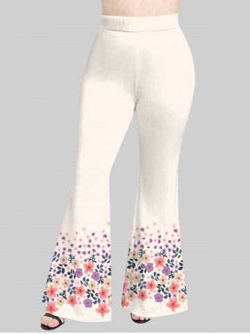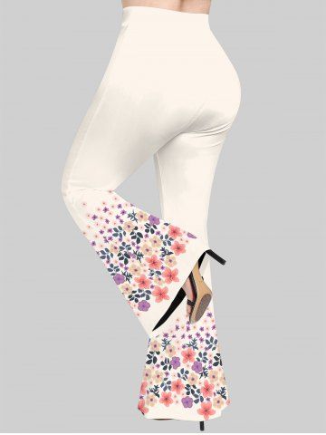 Plus Size Colorful Peach Blossom Flowers Leaf Print Flare Pants - Multi-a - 4x