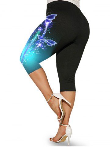 Graphic Leggings > Plus Size & Curve High Waist Butterfly Print Capri Leggings