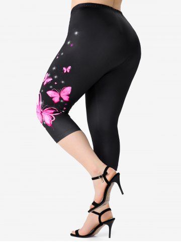 Graphic Leggings > Plus Size & Curve High Waist Butterfly Print Capri Leggings