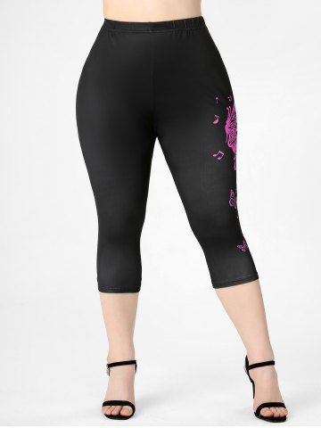 Graphic Leggings > Plus Size & Curve High Waist Butterfly Print Gym Capri Leggings