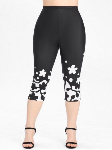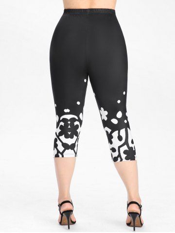 B5Monochrome Floral Lace Panel Tank Top and Capri Leggings Plus Size Summer OutfitColor: BLACKVery cute
