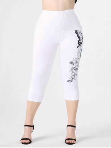 Plus Size & Curve Sunflower Butterfly Print Capri Leggings - White - M | Us 10