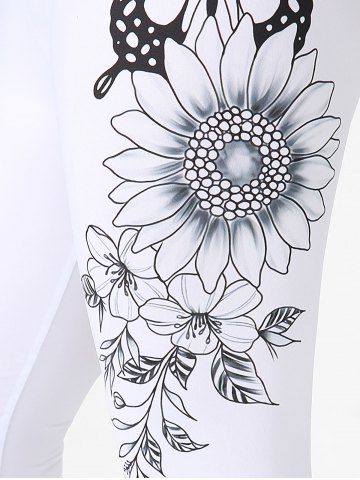 Plus Size & Curve Sunflower Butterfly Print Capri Leggings - White - 1x | Us 14-16