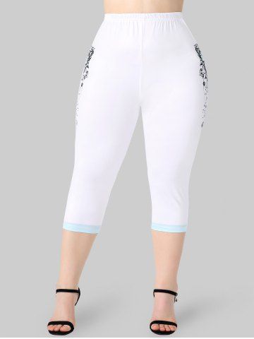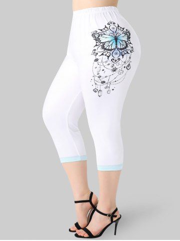Plus Size & Curve Two Tone Butterfly High Waisted Leggings - White - 2x | Us 18-20