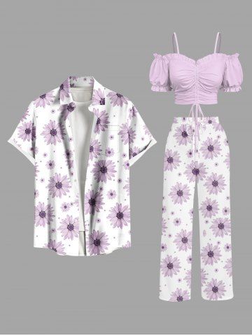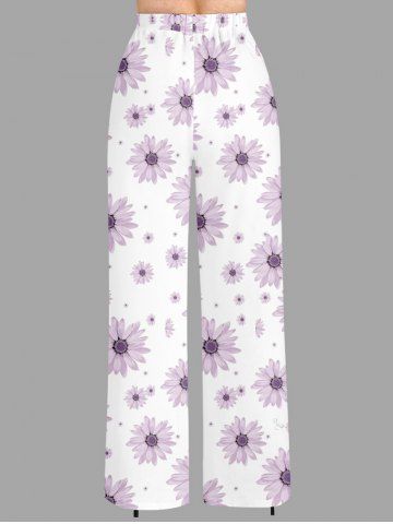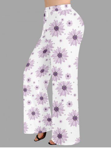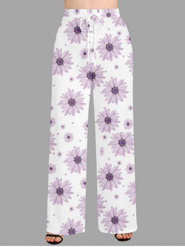 Plus Size Daisy Flowers Print Drawstring Hawaii Wide Leg Pants - Light Purple - 6x