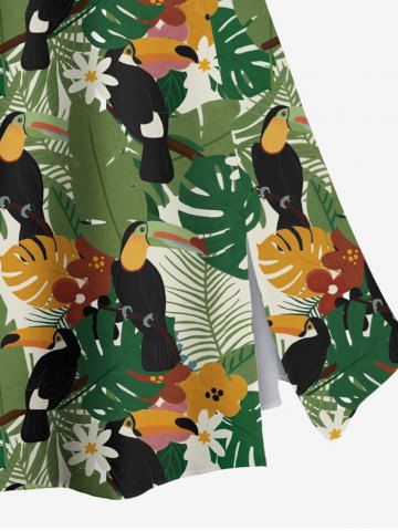 Plus Size Daisy Flowers Tropical Leaf Bird Print Split Hawaii Skirt - Green - 5x