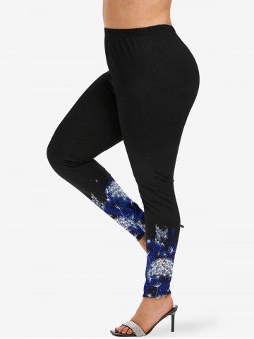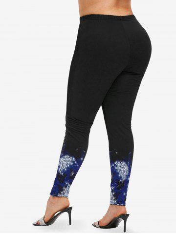 Plus Size Dandelion Butterfly Galaxy Print Leggings - Black - 3x