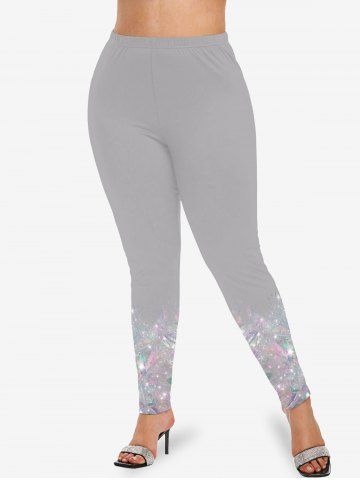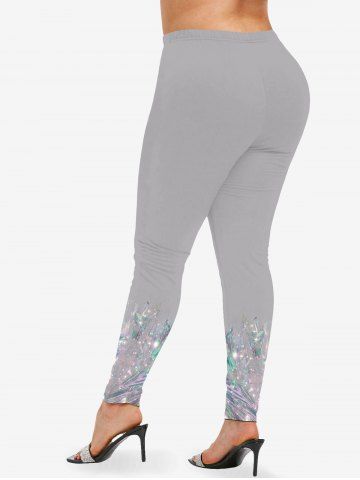 Plus Size Diamond Sparkling Sequin Glitter 3D Print Leggings - Gray - 2x
